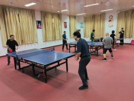 在乒乓球比赛中,共有二十多名教职工报名参赛,本次比赛按男女分组,每组采取循环赛计算总成绩。参赛选手以饱满的精神状态投入比赛中,展现出较高的球技和勇于拼搏的精神。场上裁判员和工作人员认真负责,热情服务。场边观众不时为选手加油助威。