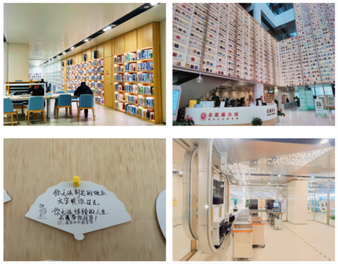 跟随着工作人员的讲解,大厅内四面环绕的巨大书墙首先给现场师生带来深深的震撼。而集借还书、导航、问答、咨询等为一体的智能化机器人,以及全国率先使用的智能立体轨道分拣系统,则让大家直观了解图书馆的智慧服务场景。在少儿阅读空间,卡通形象的自助借还机、选择一个玩偶陪伴读书、星空墙绘下的阅读帐篷,这些考虑少儿读者特点和情感需求的人性化设计,唤起了师生们内心的纯真童趣。最后,“夜书房”、“定山剧场”、“慢阅·江韵文创空间”,以及结合新区产业发展方向针对性开设的“产业阅览区”,让大家了解到江北图书馆新馆作为全国首家国家图书馆共建馆,打造国家级新区公共文化服务体系样板的建设目标。