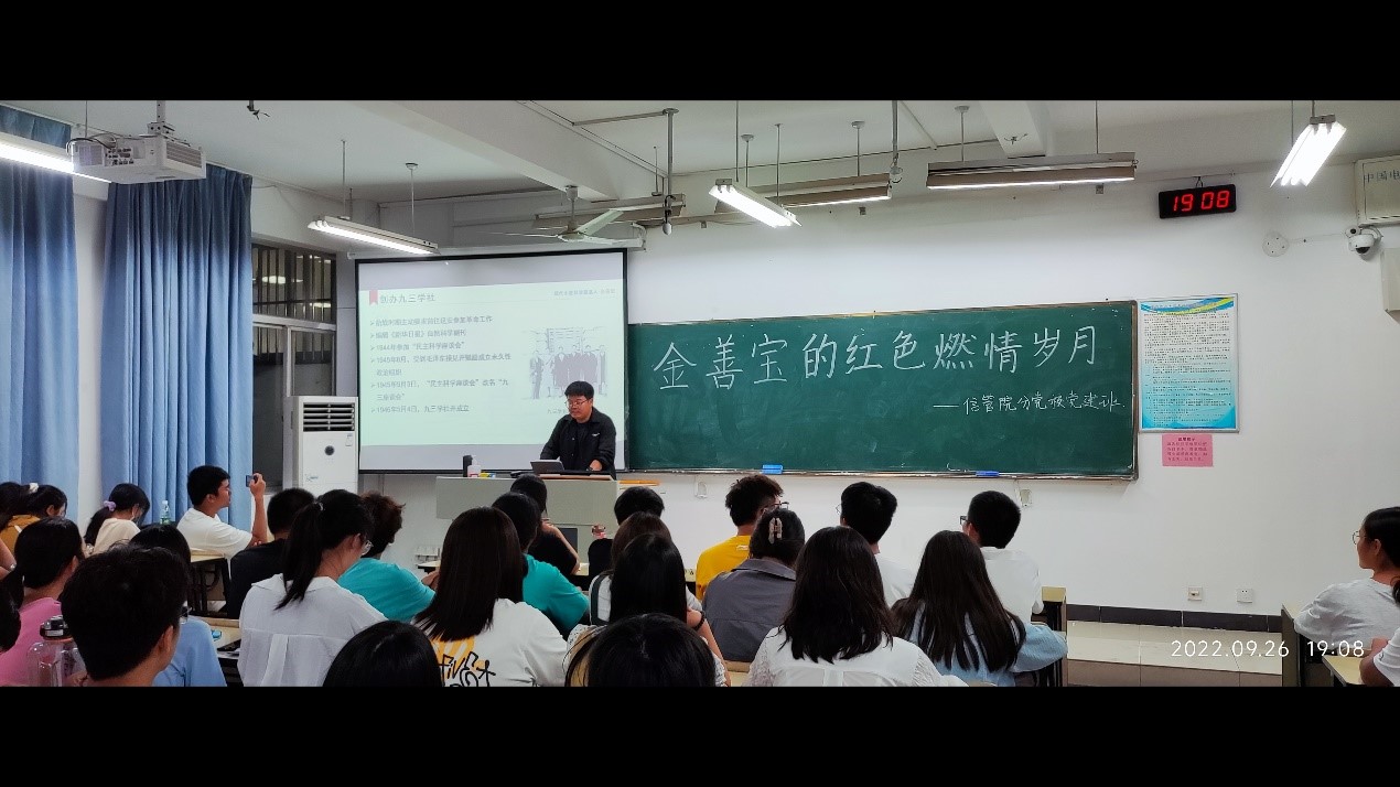 党建班活动实践部的那布琪同学为大家带来主题为“农学泰斗——金善宝的红色燃情岁月”的微党课。他从金善宝书院入手,向大家介绍了金善宝先生为党和学校做出的伟大贡献。“勤奋耕耘育良种,老骥伏枥写专著。言传身教堪师表,桃李天下仍近人。”金善宝先生的精神将永远铭记在每一个南农学子的心中。