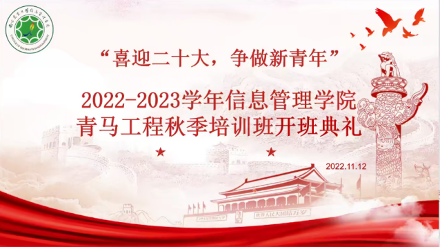 青马工程秋季培训班开班典礼以及第一期“学生干部基本素养培训”线上培训。本次培训由学组办黄志恒主讲,信管院主要学生干部及志愿报名的其他学生参与了本次培训。