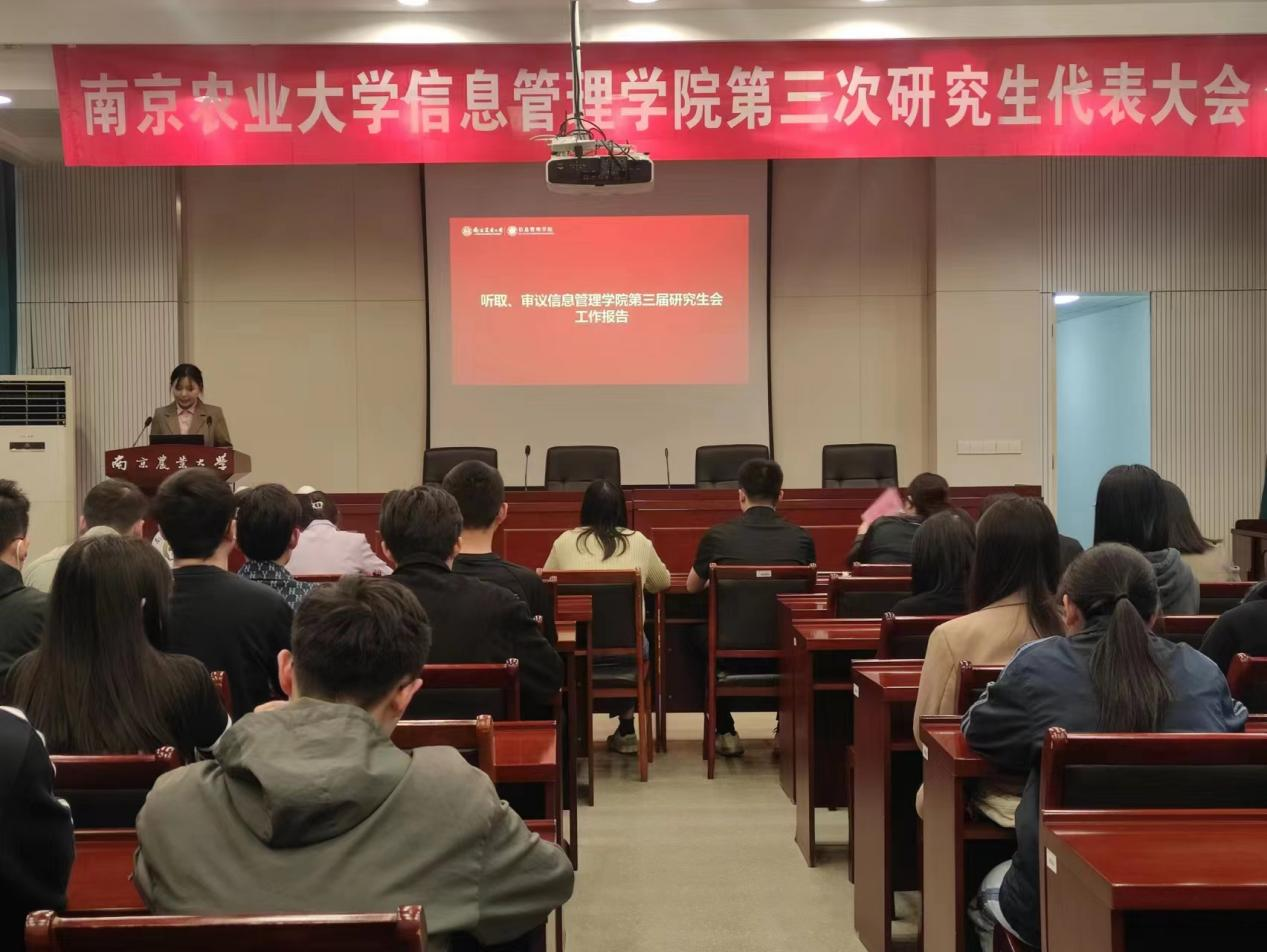 第三次研究生代表大会在育贤楼C502召开。院团委副书记夏丽君老师、院研究生会第三届主席团、全院各专业研究生代表参加会议。大会伊始,全体起立奏唱《中华人民共和国国歌》。