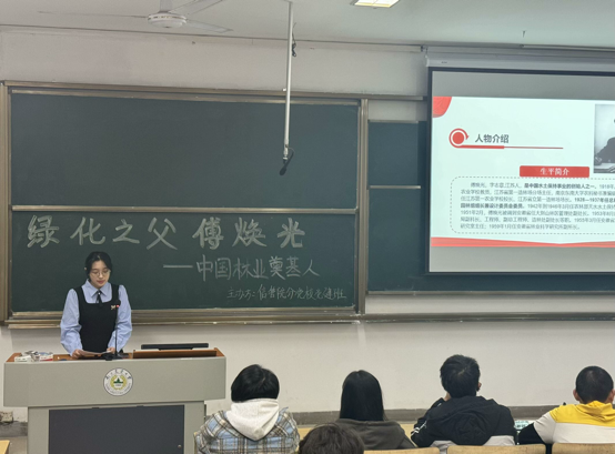 分党校党建班在汇贤楼D101成功举办主题为“追忆‘绿化之父’傅焕光——中国林业事业的光辉篇章”的微党课活动。