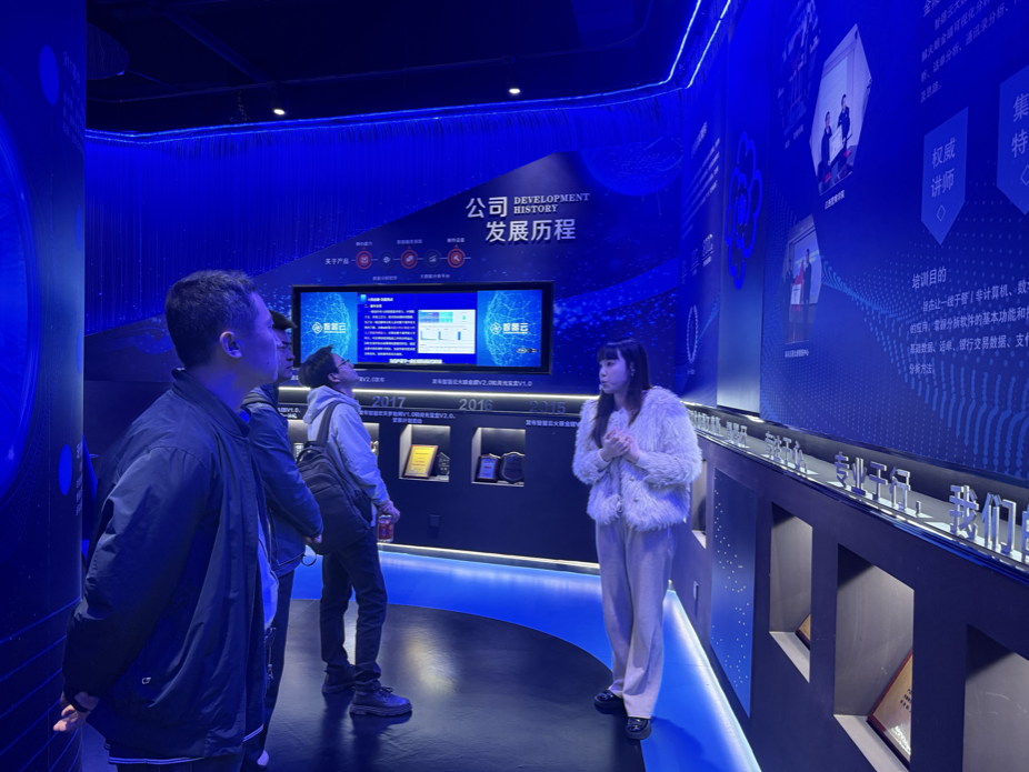 党委副书记裴海岩,学工办副主任夏丽君以及学生代表参与此次活动。与公司董事长王海波围绕就业实习、企业行业导师聘任、课程共建、第二届信息分析设计大赛推进等进行交流研讨,达成了合作意向。