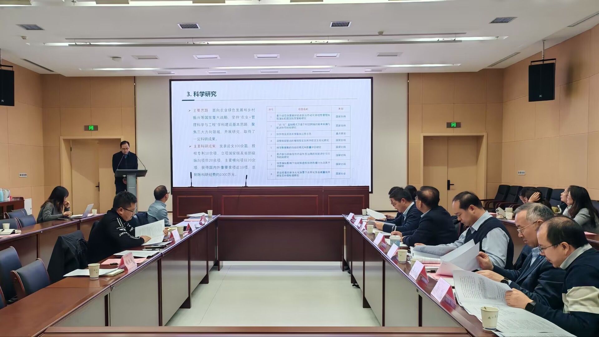 会议第二阶段由专家组组长刘心报教授主持,张兆同做管理科学与工程一级学科硕士学位授权点的评估汇报,主要围绕学位点教育基本情况、自我评估工作开展情况及持续改进计划三个方面展开。与会专家查阅了学位授权点自我评估总结报告,听取了现场汇报,通过提问和质询和实地考察,对学科发展给予了充分的肯定。