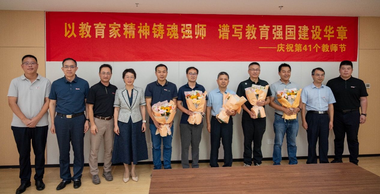全体教职员工致以节日的祝福,向老师们表达关怀与敬意,并为教师代表茆意宏、杨建明、傅雷鸣、李建、沈军威送上鲜花,91自拍
