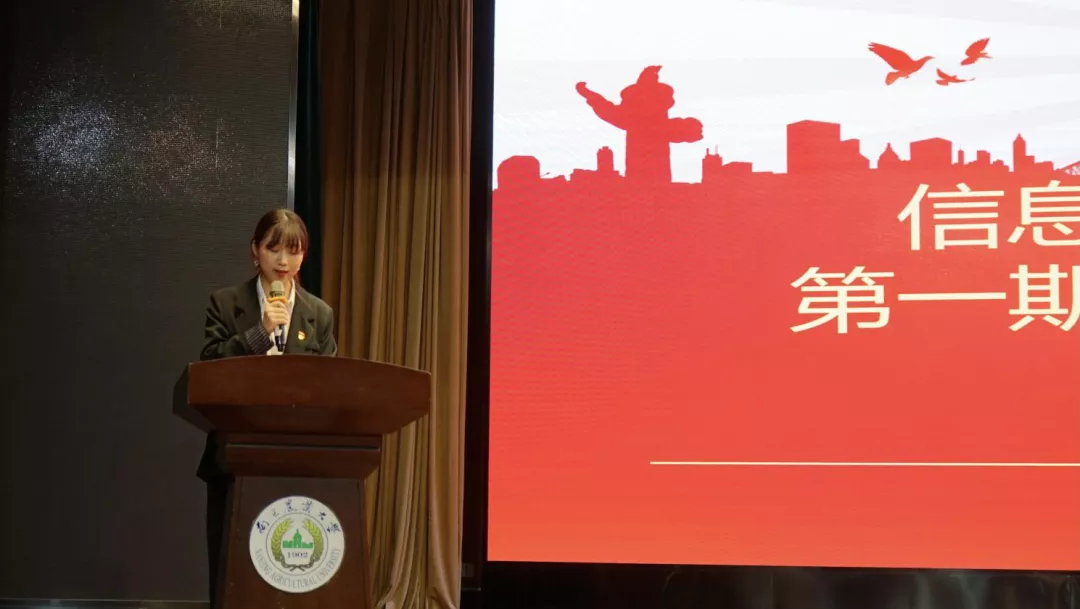 随着雄壮的国歌声,党建班的开班典礼也拉开了帷幕。典礼开始后,首先由党建班班长周颖同学进行第一期党建班的工作计划汇报,随后,党务秘书张鸣宣读了2020年10月份新发展党员名单以及2019年上半年发展预备党员转正名单。