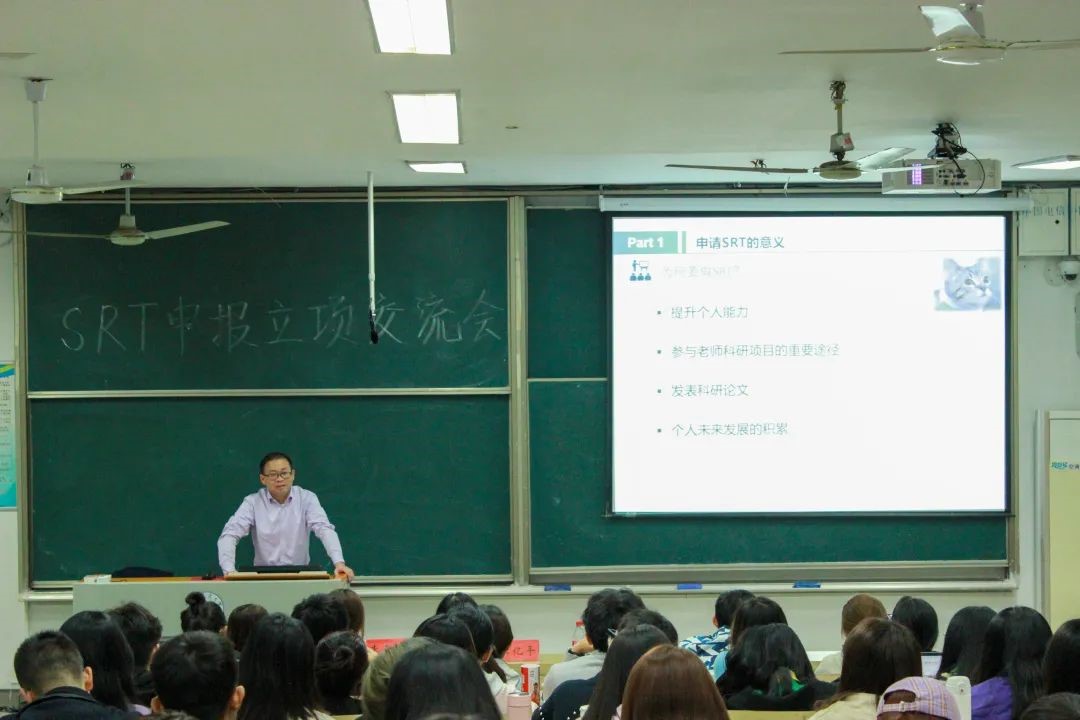 讲座开始后,江亿平老师首先为同学们介绍了什么是SRT、为什么大学生需要申请SRT,并谈到了选择立项、申请书撰写等问题,例如需要注意撰写目标、经费预算、考察方向等,为同学们理清了SRT的一些注意事项,让同学们对未来的学习生活有了更加明确的方向。