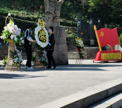活动伊始,志工部-红会部长李宇翰将准备好的花圈献给烈士们,以表达对烈士们的敬佩怀念之情。而后同学们按列依次站好后集体默哀三分钟,在这庄严肃穆的三分钟里,悲惨沉痛的历史与勇士们的慷慨赴死仿佛历历在目,同学们对传承革命精神,努力参与民族复兴的信心必更加坚定!最后,大家井然有序地向先烈们献花,向先烈们表达自己的一份敬意。