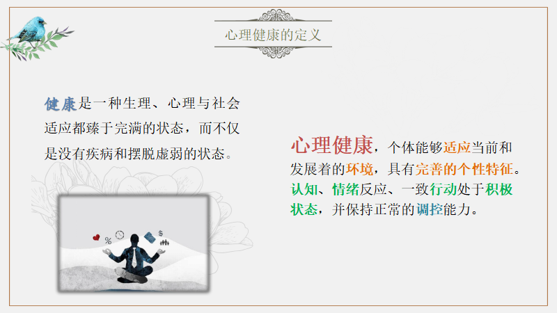 会议伊始,许梓薇介绍了什么是心理健康,给出了心理健康的详细定义以及心理健康拥有连续性、动态性、可逆性的特点。通过心理健康正常与异常的对比,她指出心理正常不是没有心理困扰,而是能有效得解决心理困扰。随后,许梓薇通过分析几个具体的心理健康案例,从心理健康角度作了详细的案例讲解。