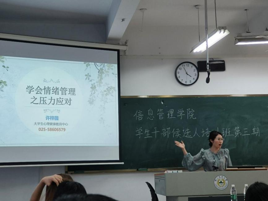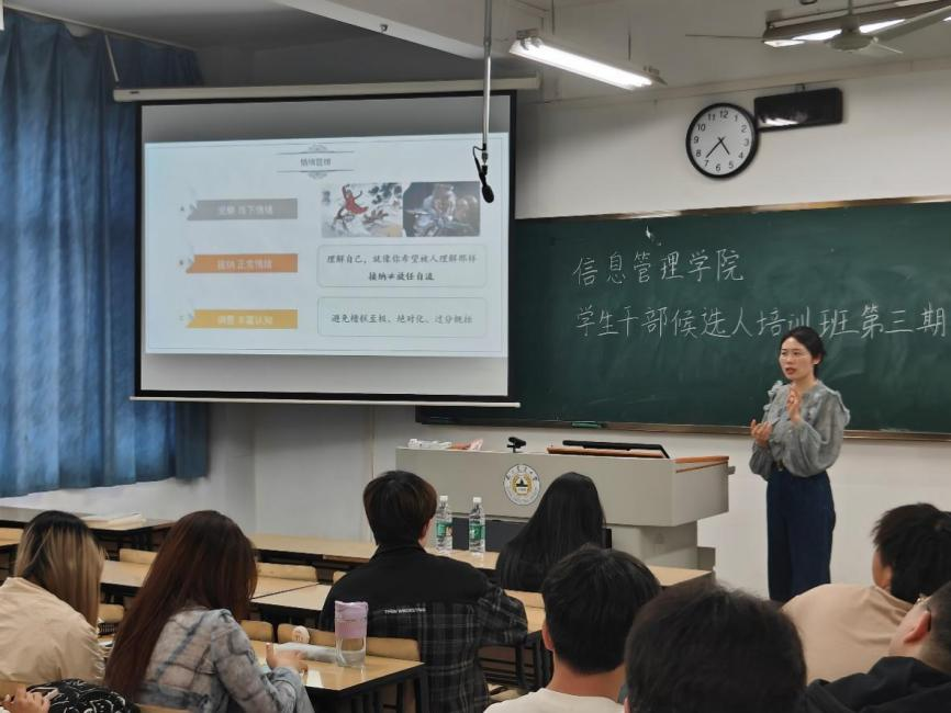 第五届学生干部候选人青马工程培训班之心理素质提升与情绪管理在汇贤楼A306教室举行。大学生心理健康教育中心专职教师许梓薇出席本次培训,91自拍