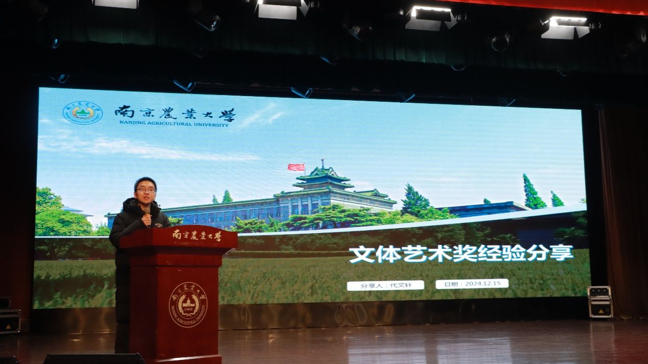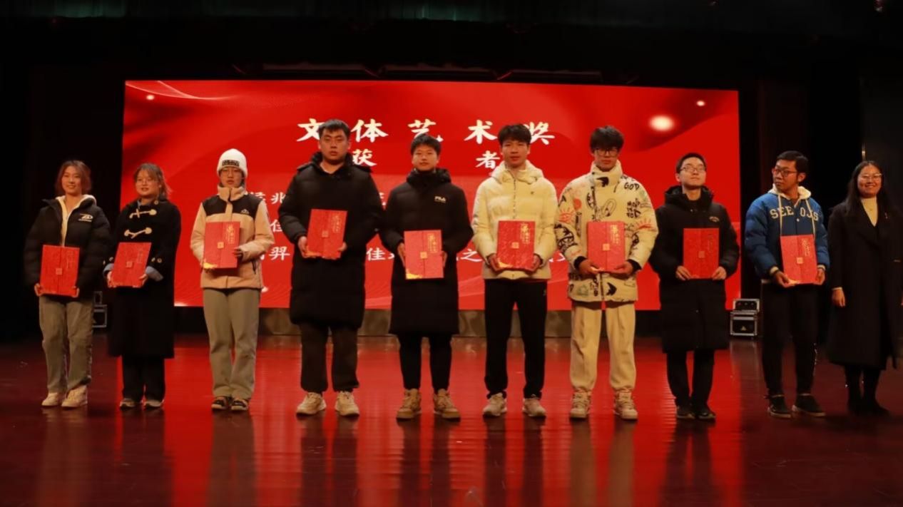 大会进行第五项表彰:文体艺术奖。夏丽君老师为侯兆晗、陈冠宇等获奖代表颁发“文体艺术奖”。这些获奖者文体兼修,成绩斐然。随后,代文轩同学作为获奖代表分享他的经验。