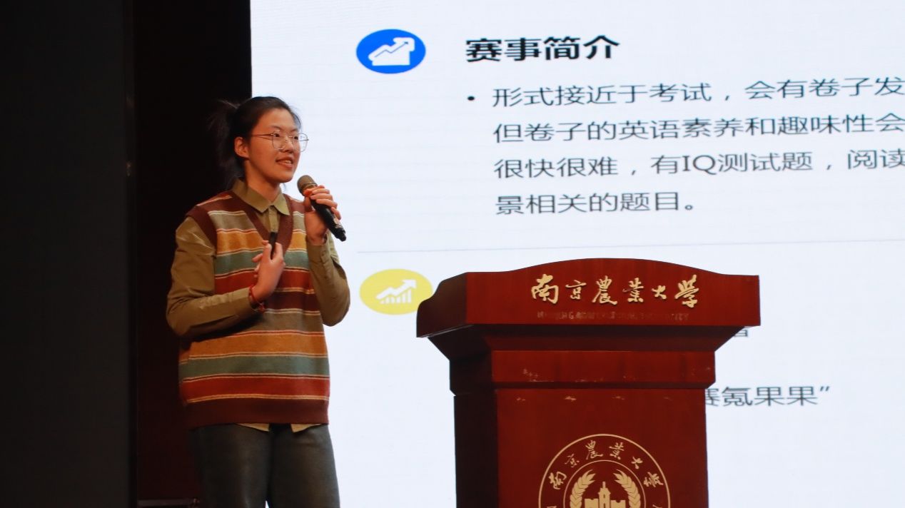 大会进行第二项表彰:英语卓越奖。李艳丹老师向王颖、丁一等获奖代表颁发“英语卓越奖”,获奖者均在四级考试中取得 620 分以上、或者在六级考试中达到 540 分以上的成绩。颁奖后,李艳丹老师为在座同学开展学习经验指导,张翡宸同学作为获奖代表分享她的英语学习经验。