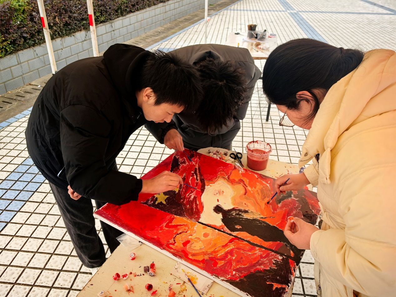 在润泽园广场上,同学们以自己的理解用画笔为和平鸽和纪念星等图案来填上适合的色彩,一同完成了一幅象征着和平与缅怀的完整作品。如今的中国,和平来之不易,同学们对于纪念绘画的热情很高,一方面是彰显对世界和平的向往,另一方面是表达对历史的追思与敬意。