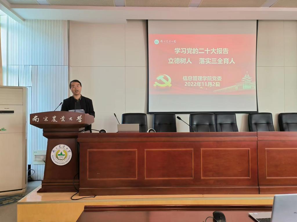 在浦口校区育贤楼C502会议室召开全体教职工大会,专题学习党的二十大精神,推进91自拍